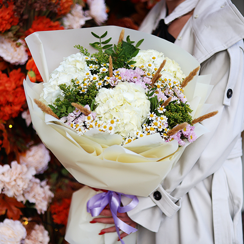 Букет "Zero" из хризантем сантини и гортензий