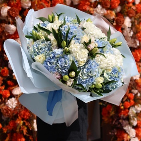 Букет "Елизавета " из гортензий, роз и пионовидных ароматных лилий
