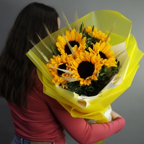 Букет с подсолнухами и колосками