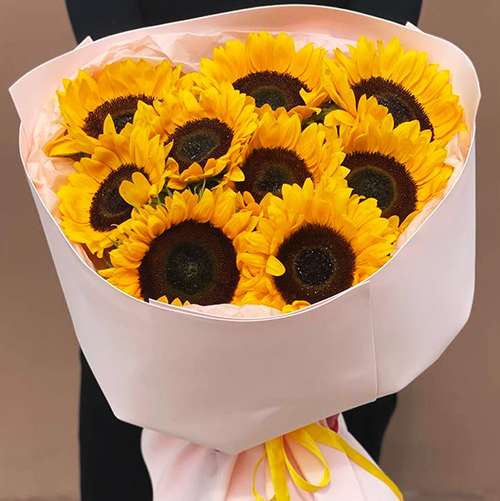 Букет "Солнечный рассвет" из 9 подсолнухов