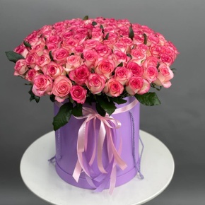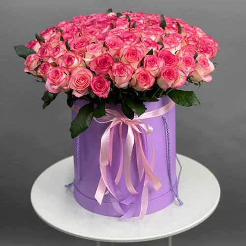Композиция в шляпной коробке "Индиана" из 101 розы Джумилия